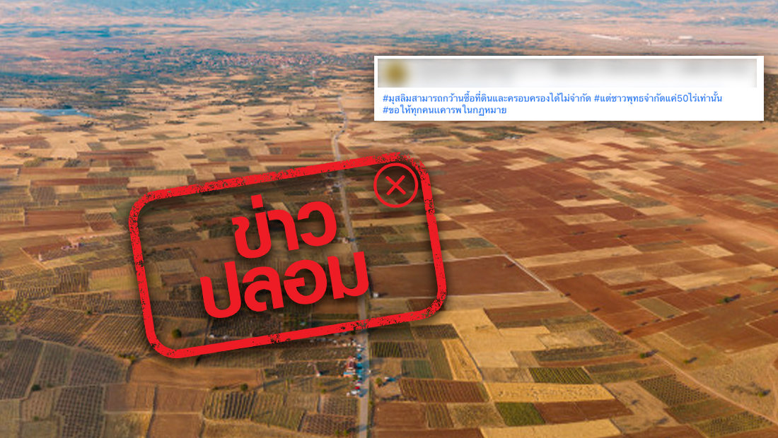 ตามที่มีการเผยแพร่ว่ามุสลิมสามารถซื้อที่ดินได้ไม่จำกัด ส่วนชาวพุทธซื้อที่ดินได้แค่ 50 ไร่ เท่านั้น ทางศูนย์ต่อต้านข่าวปลอมได้ดำเนินการตรวจสอบข้อเท็จจริงกับทางกรมที่ดิน กระทรวงมหาดไทย พบว่าประเด็นดังกล่าวนั้น เป็นข้อมูลเท็จ